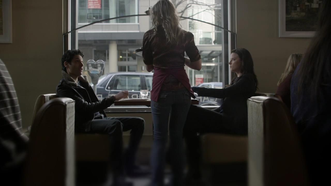 As Kiera sits down to coffee in the morning, she is surprised by Kellog suddenly appearing at her table. He with grenade in hand and she with gun aimed at him under the table, Kellog offers to share information with her in an effort to protect for their futures for their mutual survival. When Carlos arrives, Kellog makes a hasty exit.